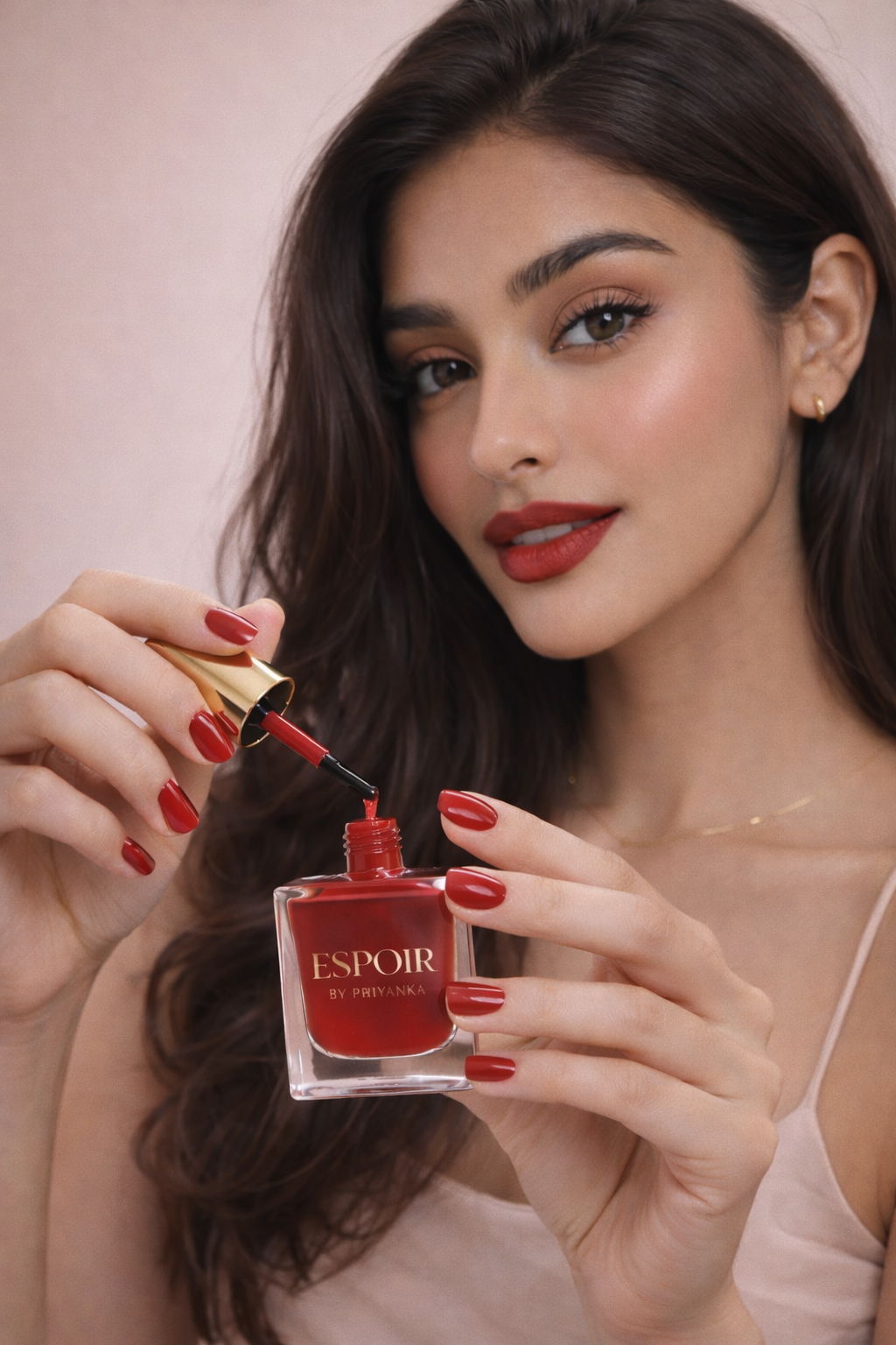 Espoir Intense Nail Lacquer is designed for bold, high-impact color with a glossy, professional finish. The smooth-flow formula glides evenly, dries quickly, and delivers rich pigmentation without streaking.